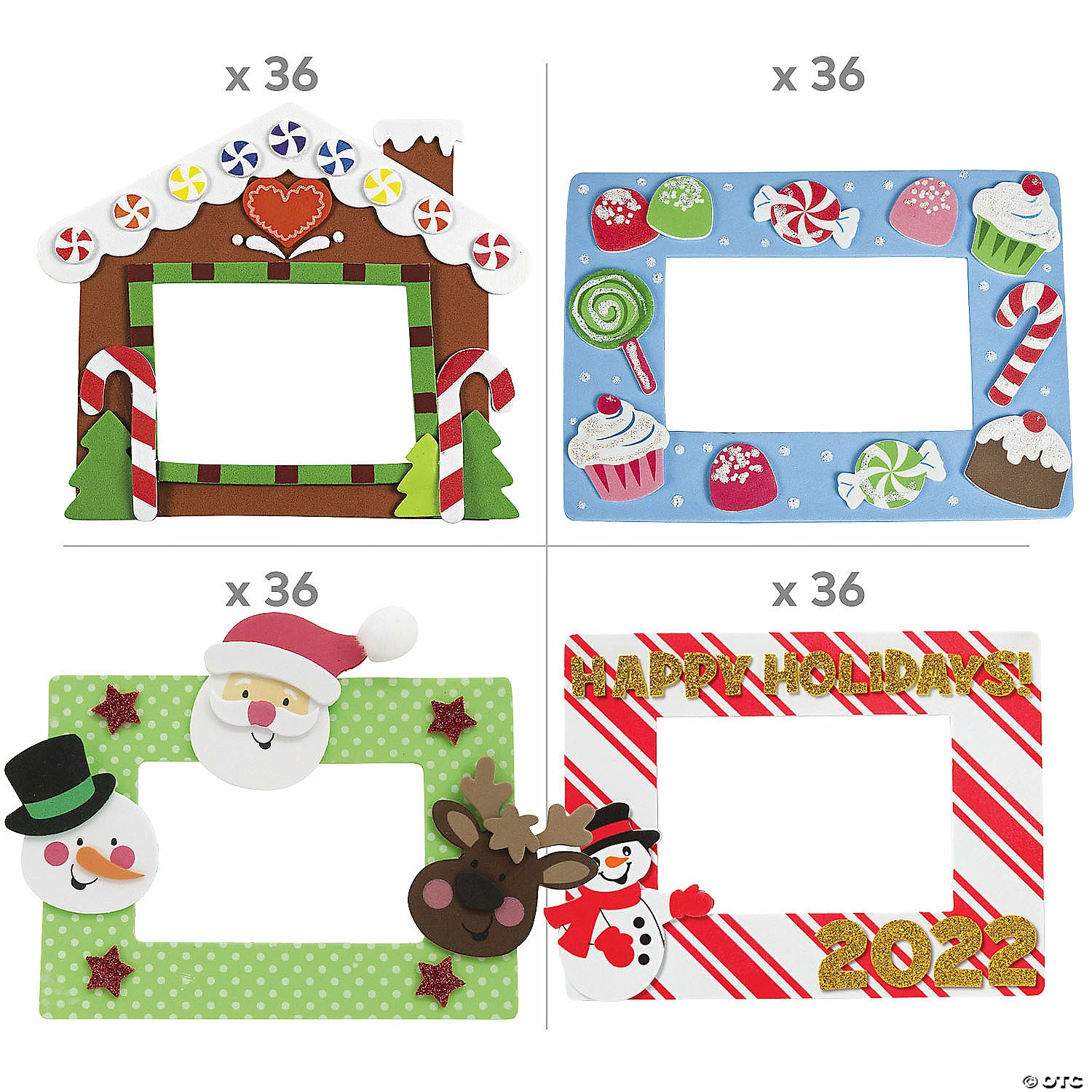 Oh, the variety of these fun Christmas crafts! Put little ones to work designing their own picture frames and then let them pick out a holiday picture to feature for extra fun. Whether youβre hosting a Christmas party, church event or community celebration, these Christmas activities for kids can help them have a blast while designing their own Christmas decorations the whole family can enjoy. They also make great homemade gifts for grandparents, teachers and other loved onesβ¦talk about win-win! Makes 146. Assortment may vary. All craft kit pieces are pre-packaged for individual use. Kits include instructions. Β© OTCIncludes:β’ 50 Merry Christmas Picture Frame Magnet Craft Kits (Includes self-adhesive foam pieces. 7 1/2″ with a 4 1/2″ x 2 3/4″ photo space. Magnets are packaged separately. Do not discard)β’ 24 Beach Christmas Picture Frame Magnet Craft Kits (Includes self-adhesive foam pieces. 8″ x 5 3/4″ with a 4 1/2″ x 3″ photo space. Magnets are packaged separately. Do not discard.)β’ 36 Gingerbread House Picture Frame Magnet Craft Kits (Foam. 7 1/2″ x 6 3/4″; holds a 4″ x 2 3/4″ photo.)β’ 36 Christmas Truck Picture Frame Magnet Craft Kits (Includes self-adhesive foam pieces and wooden craft sticks. 6 3/4″ x 7 1/2″ with a 2 1/2″ x 2 1/4″ photo space. Tape required to complete craft not included (sold separately on this website).)β’ Assortments are subject to change at any time and may vary from picture shown. Substituted items will be similar in nature.
