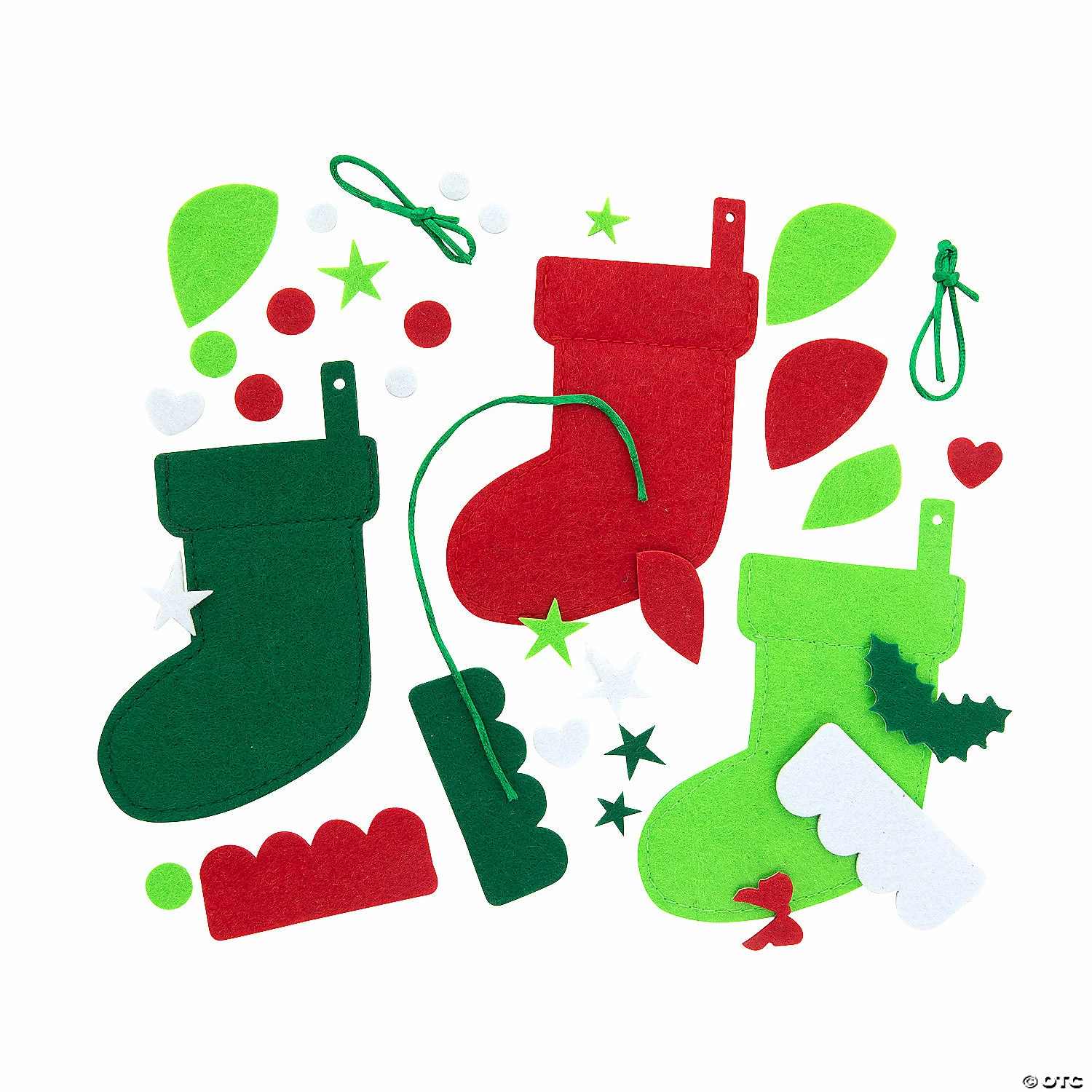 And all of the children had their stockings hanging, anxiously waiting for Christmas morning. Kids will have fun picking out their favorite stocking and assembling this Christmas craft. This is an easy activity for the classroom, daycare or during a holiday party that kids can take home to hang on their Christmas tree. Includes self-adhesive felt pieces and satin cording. 3 1/2″ x 4 1/2″ Makes 12. All craft kit pieces are pre-packaged for individual use. Kits include instructions. ยฉ OTCFelt Christmas Stocking Ornaments Instructions