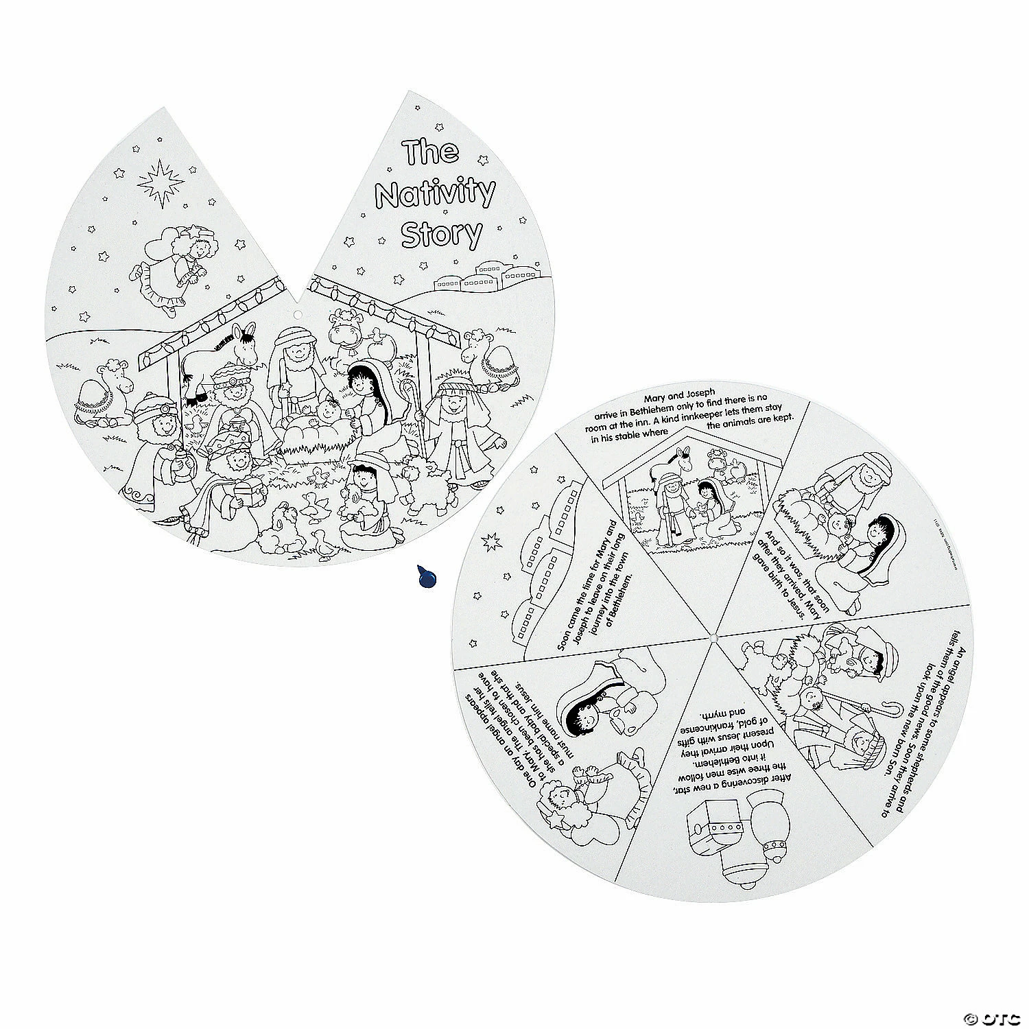 Itβs easy to teach or retell the Nativity story with this wheel! Color in the pictures how you like and then piece together the Color Your Own Nativity Wheels. Turn the wheel to reveal the next section and the next part of the Christmas story. Makes a fun holiday activity for kids to color and read. Includes metal brads. Paper. 9″ diam. We recommend using crayons, colored pencils, washable markers or permanent markers, sold separately online. Β© OTC
