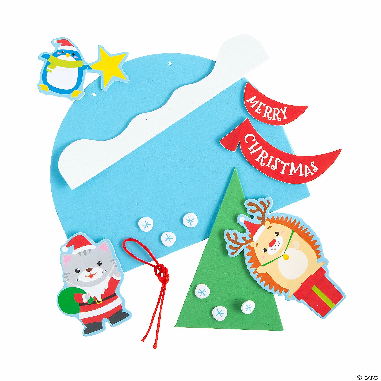 In a world where Santa is a cat, any animal can help decorate for Christmas! This simple peel-and-stick craft kit makes it easy for kids to create a Christmas decoration theyβll be proud to display. This non-religious Christmas craft is great for the classroom or at a kidsβ activity table at a Christmas party. Includes self-adhesive foam pieces and satin cording. 7 3/4″ x 6 1/4″ Makes 12. All craft kit pieces are pre-packaged for individual use. Kits include instructions. © OTC